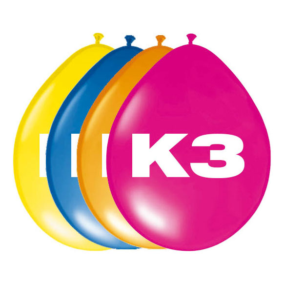 Maak de versiering van je meidenfeest compleet met deze set ballonnen van K3. De set bevat 8 ballonnen in de kleuren blauw, geel, roze en oranje.