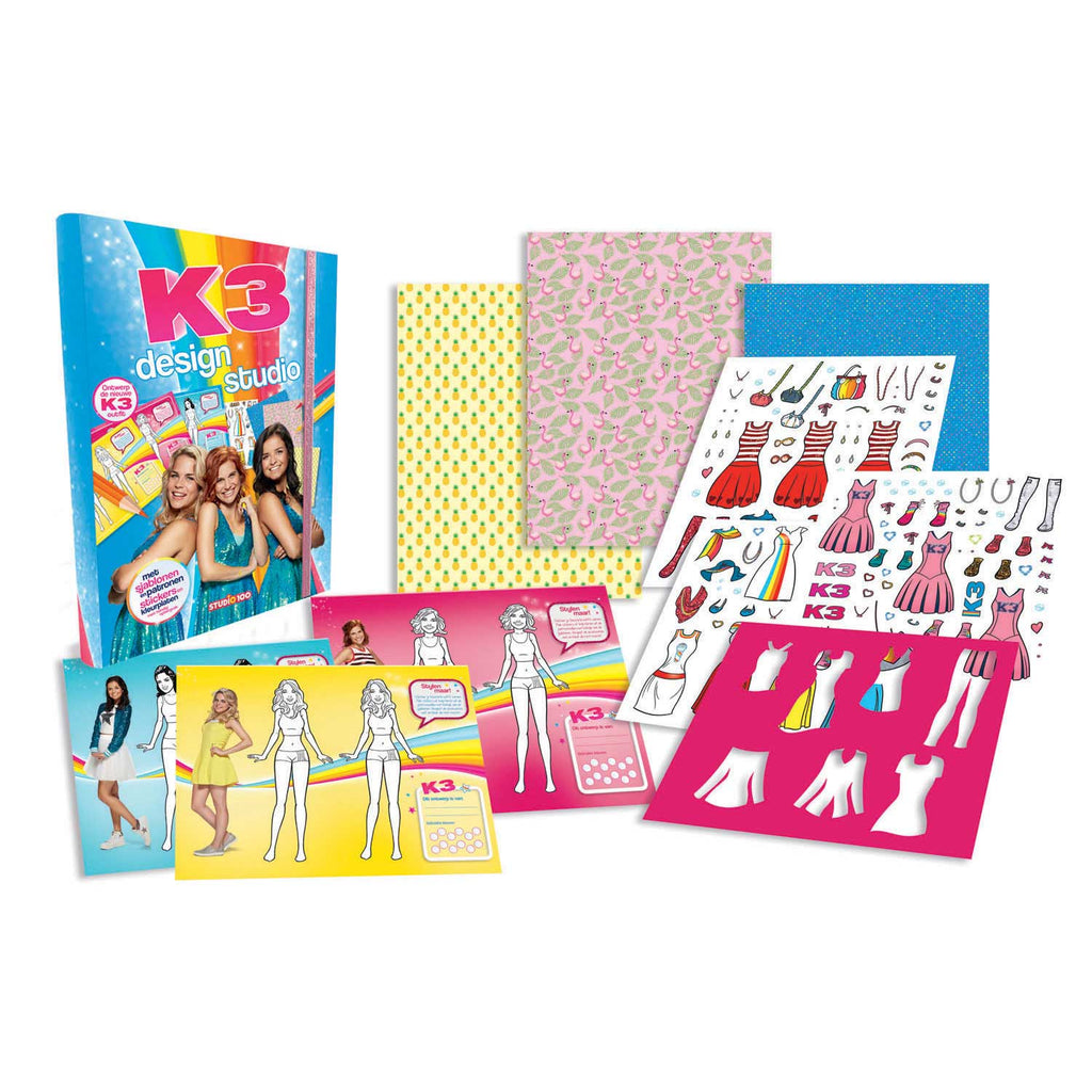 Schuilt er in jou een echte fashionista en ben je fan van K3? Dan kan jij je geluk niet op met de K3 design studioset. Met de K3 design studioset ben jij de ontwerper en ontwerp je nieuwe outfits voor de lieve K3 meisjes. Ga aan de slag met de bijgeleverde sjablonen, stickers, patronen en kleurplaten. Ben je helemaal tevreden met de nieuwe outfits, bewaar ze dan in de handige opbergmap.