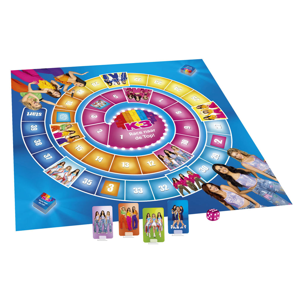 In de Race naar de Top strijden de spelers tegen elkaar om als eerste de top van de hitparade te bereiken, samen met K3! Maar de weg ar de eeuwige roem van een nummer1-hit is lastig: soms moet je interviews geven, handtekeningen uitdelen of optreden en dat neemt tijd in beslag. Maar die tijd wordt ingehaald met de meevallers op je pad. Het leukste aan de Race ar de Top is dat je zelf kiest waar de obstakels of meevallers liggen waardoor elke speelsessie anders wordt. Zijn jullie klaar om de hitlijsten te veroveren?