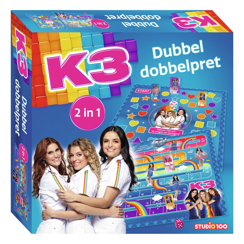 Ben jij goed in dobbelspelletjes? Dan is het regenboogspel en kleur- en vormspel van K3 echt wat voor jou! Speel samen met je gezin of vrienden en dobbel erop los. Degene die als eerste met Hanne, Marthe en Klaasje bij de finish geraakt, mag hardop een K3-liedje zingen en dansen! Speelduur: ongeveer 15 minuten. Geschikt voor 2 tot 4 spelers vanaf 4 jaar oud.