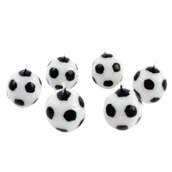 Set van 6 kaarsjes in de vorm van een voetbal.
