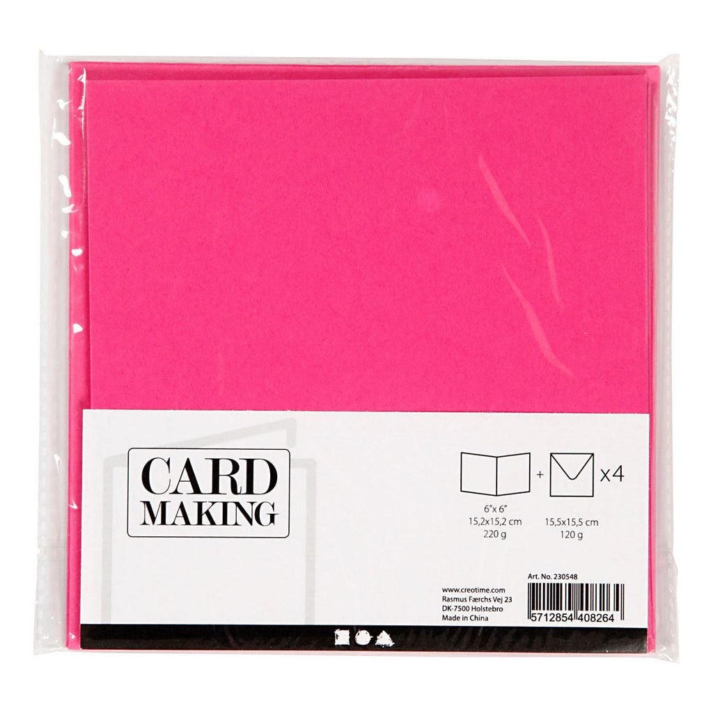 Dubbelzijdige kaarten gemaakt van stevig karton. Voorzien van een bijpassende papieren envelop met opnieuw bevochtigbare gom op de flap (bevochtig om de envelop te verzegelen).Gewone kaarten die kunnen worden gebruikt voor alle soorten kaartdecoratie en technieken voor het maken van kaarten. Versier met stickers, papier of kaartponsjes, tape, 3D-motieven en nog veel meer.