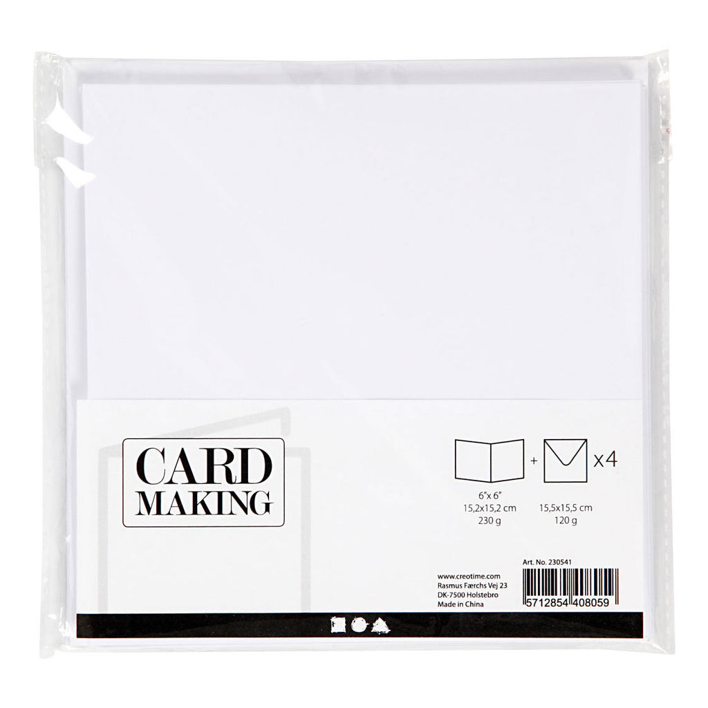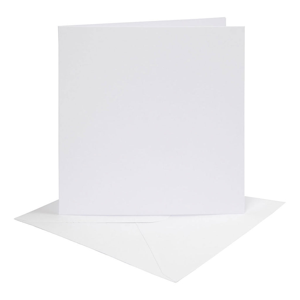 Dubbelzijdige kaarten gemaakt van stevig karton. Voorzien van een bijpassende papieren envelop met opnieuw bevochtigbare gom op de flap (bevochtig om de envelop te verzegelen).Gewone kaarten die kunnen worden gebruikt voor alle soorten kaartdecoratie en technieken voor het maken van kaarten. Versier met stickers, papier of kaartponsjes, tape, 3D-motieven en nog veel meer.