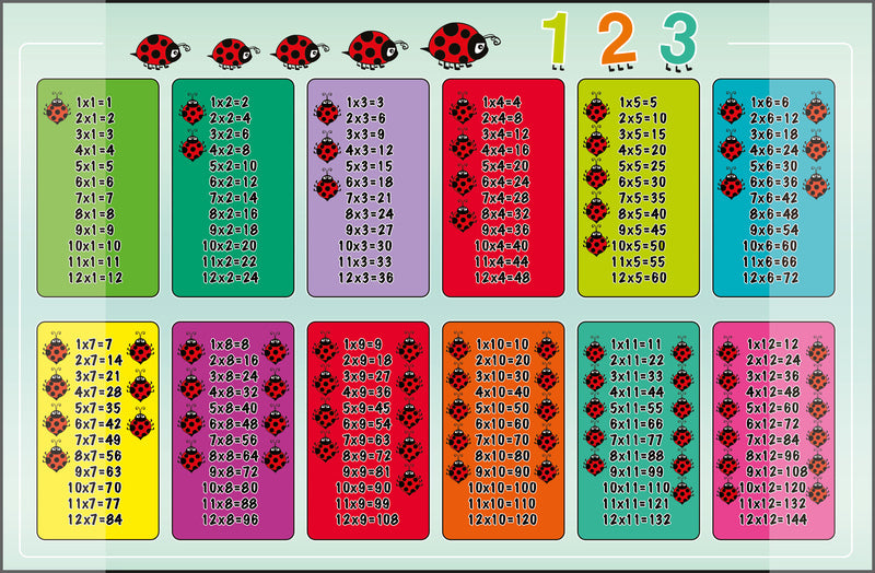 Soepele PP bureau-onderlegger met fraai dessin. Formaat 38x58cm. Dessin Rekentafels. Met anti-slip achterkant. 100% recyclebaar.