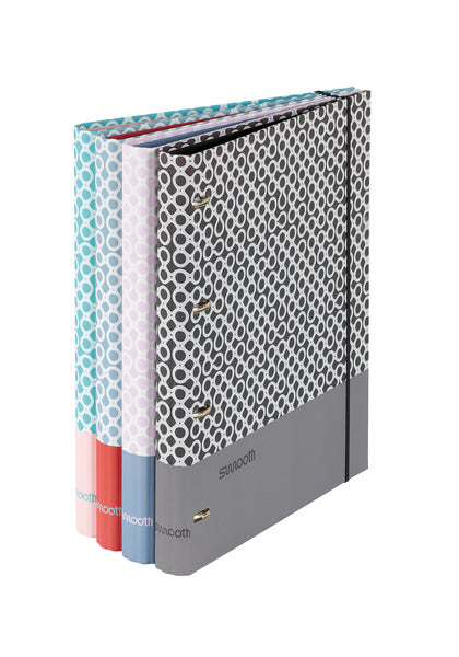 De trendy 4-rings D-mechaniek ringband Smooth A4 heeft een capaciteit van 25mm. Voorzien van sluitband elastiek incl. 50 vel gelinieerd papier 100gr. De opdruk is voorzien van spot UV, waardoor details zichtbaar zijn en het een levendige uitstraling krijgt. Wordt geleverd in 4 kleurcombinaties.