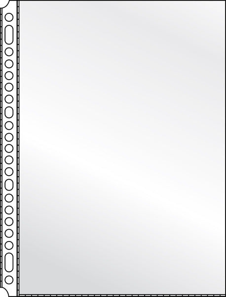 Zware kwaliteit showtas van PP 120 mµ, geschikt voor formaat A4, generfde uitvoering, copysafe en antistatisch. Bovenzijde open en de ponsgaten zijn met een witte strook versterkt. 23-gaats. 10x10 stuks.