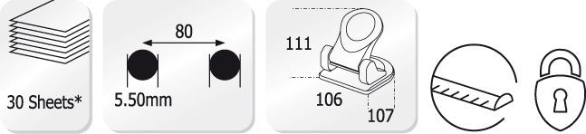 Sterke kantoorperforator voor professionele toepassingen. Stevig verstelbare aanleg, goed leesbare formaataanduiding. Capaciteit maximaal 30 vel. Handige bovendeel-vergrendeling voor ruimtebesparend opbergen. Metalen apparaat. Passend bij nietmachines 'Trendy'.