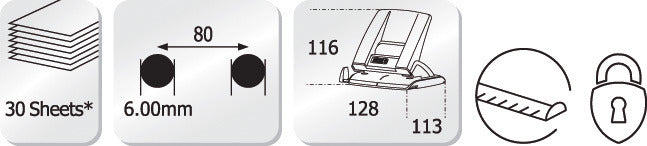 De Aion-30GL perforator van metaal heeft een capaciteit van 30 vel, voorzien van papieraanleg met standaard papierformaten aangeduid. Passend bij nietmachine NOWA335S