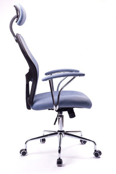 De bureaustoel met klassieke ingrediënten in een moderne uitvoering. De zitting is uitgevoerd met een hoogwaardig meshstoffen bekleding, en een luchtige netstof bekleding op de rugleuning. De zitting geeft maximaal comfort met de ergonomische gevormde zitting en in hoogte verstelbare rugsteun. Tevens heeft de zitting afgeronde hoeken aan de voorkant voor een natuurlijke ondersteuning. De bureaustoel is in hoogte verstelbaar (50-60 cm). Met stijlvolle armleggers, design kruisvoet van zwart kunststof en heeft chrome accenten. Max belastbaarheid is 110 kg. Zitting: 53 cm breed, 52 cm diep.