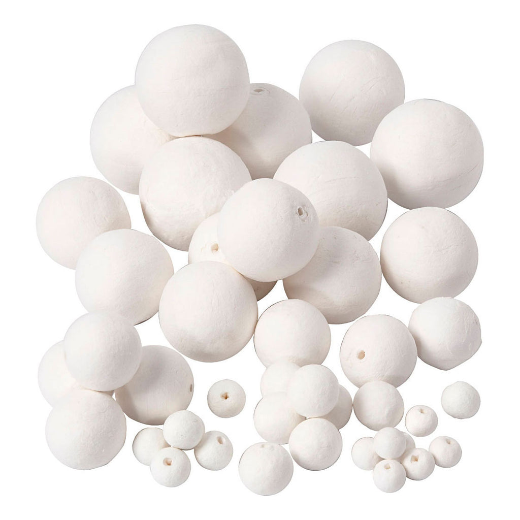Kwalitatief goede, stevige katoenballen met halfgeboord gat.Set met 6 verschillende maten, van elk 7 stuks