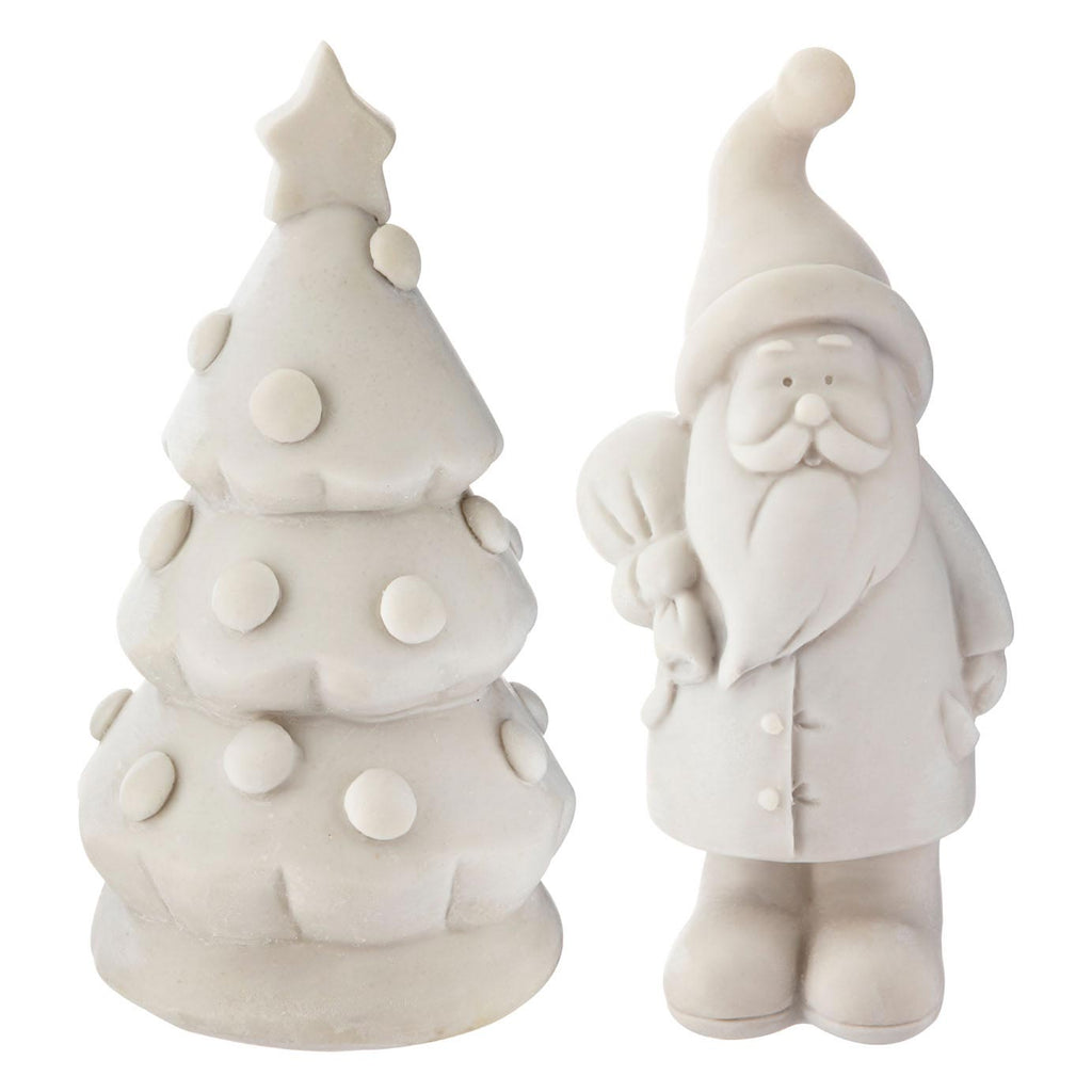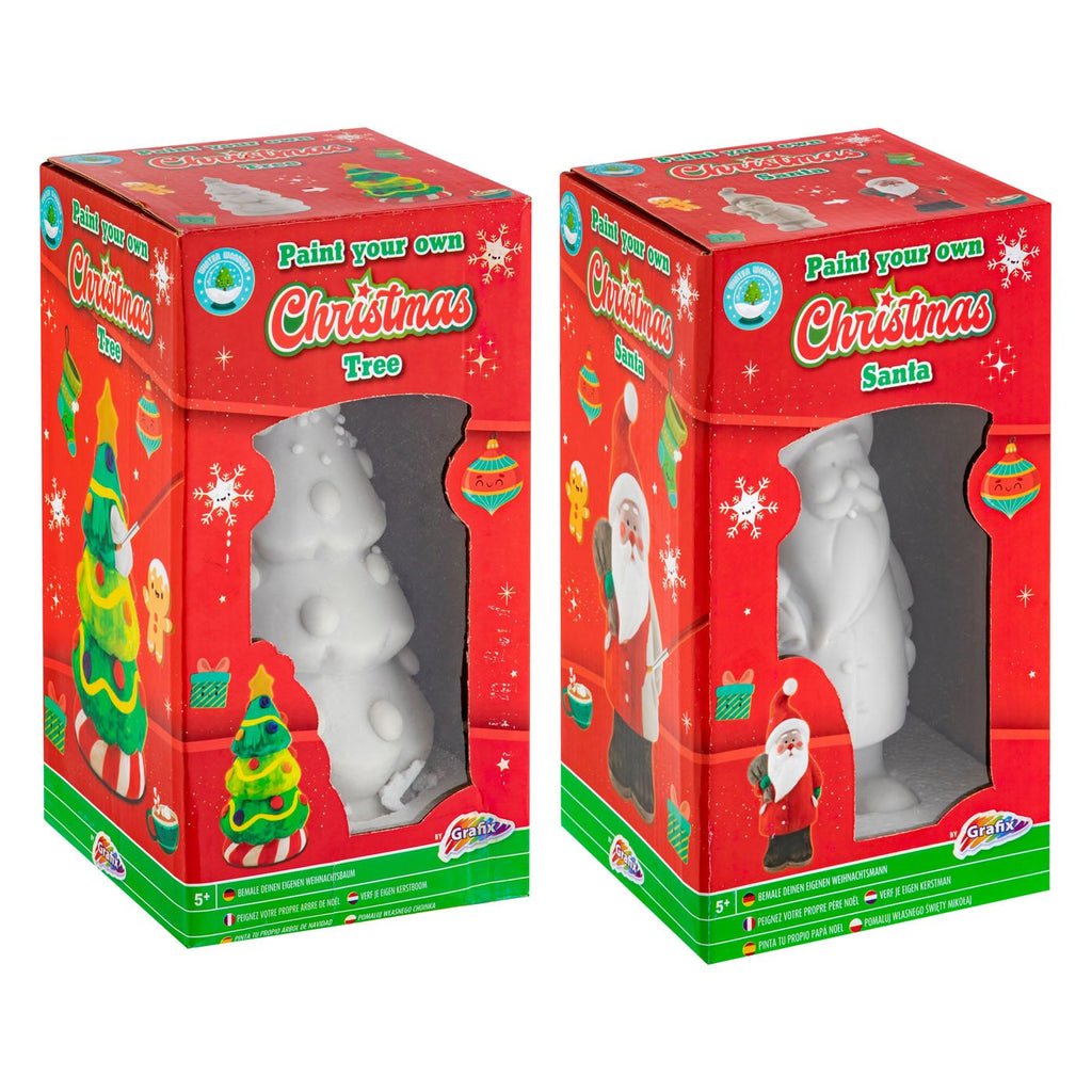 Ho ho ho, fijne kerstdagen! Deze leuke kerstfiguren van polyresin zijn om zelf te beschilderen. In de knutselset zit een kerstfiguur (kerstboom of kerstman) van 23 centimeter groot, vier verfpotjes in de kleuren groen, rood, wit en zwart en een kwastje. Geschikt voor kinderen vanaf 5 jaar.