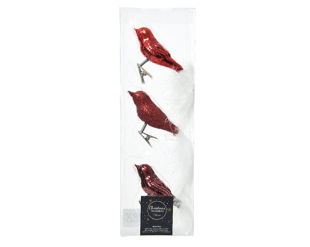 Kerstbal Glas Vogel op clip 3 stuks - Rood