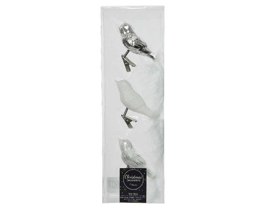 Kerstbal Glas Vogel op clip 3 stuks - Zilver