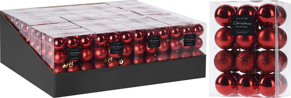 Kerstbal Onbreekbaar 3.00cm 24 stuks - Rood