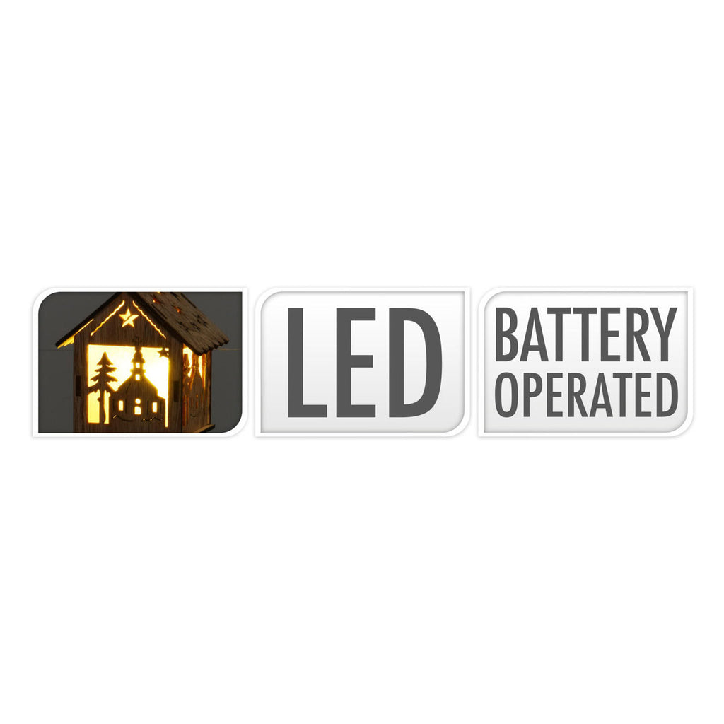 Set van 20 gezellige kersthangers in de vorm van een huisje. Met warmwit ledlicht en touwtje voor het ophangen. Circa 9 centimeter groot en werkt op LR1130-batterijen (inbegrepen).