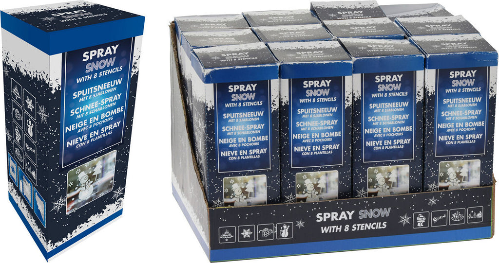 Spuitbus met kunstsneeuw en 8 sjablonen, in kerstthema. Inhoud: 150 ml. Niet geschikt voor kinderen onder de 3 jaar.