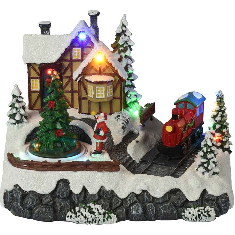 - beweging: de kerstboom draait rond en de trein beweegt van voor naar achter