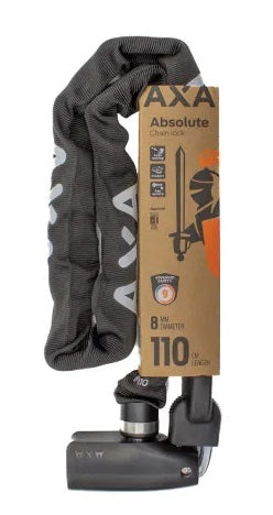 Het AXA Absolute 8 kettingslot is uitgerust met een hoogwaardige ketting. Het is ontwikkeld voor fietsen die voor middellange tijd geparkeerd worden op een plek met een gemiddeld diefstalrisico (bijvoorbeeld bij een school of een onbewaakte stalling). AXA Safety index: 9 Gehard stalen ketting Sterke polyester hoes ter voorkoming van beschadiging Geïntegreerd slothuis met automatische click-in functie Afdekkap cilinder tegen vocht en vuil Online sleutelservice RVS design details Geschikt voor: E-bikes en stadsfietsen Diameter schakels Ø 8 mm 2 symmetrische sleutels Specificaties: Merk: Axa Model: Absolute Type: Kettingslot Lengte: 110cm Diameter: 8mm Kleur: Zwart