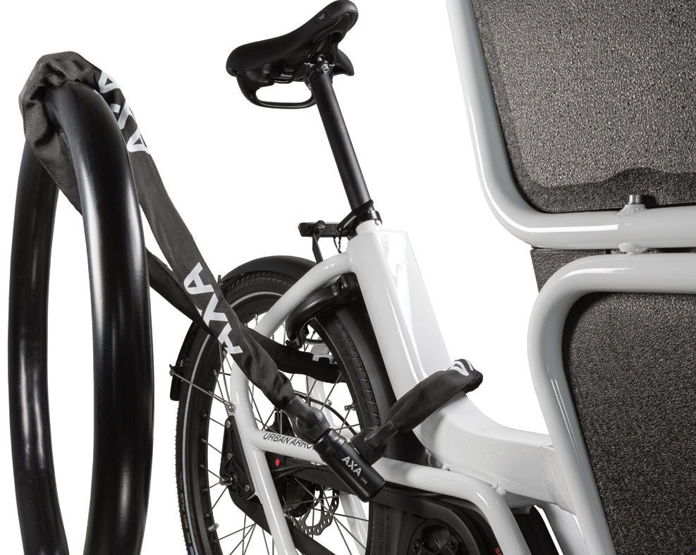 De AXA Linq is een extra sterk slot doordat de schakels doorlopen tot in de sluiting. Het soepele sluitmechanisme wordt bediend door een symmetrische sleutel. De laatste schakel van de ketting wordt gefixeerd in het slothuis door een zogenaamde deadbolt sluiting voor een extra stevige verbinding. Afgewerkt met rubberen grepen voorkomt het beschadigingen aan de fiets. AXA Safety index: 9 Anti boorplaat in cilinder Soepel sluitingsmechanisme Afgewerkt met rubberen grepen Sterke beschermhoes Symmetrische sleutel Online sleutelservice Specificaties: Merk: Axa Model: Linq City Type: Kettingslot Lengte: 180 cm Diameter: Ø 9,5 mm Kleur: Zwart