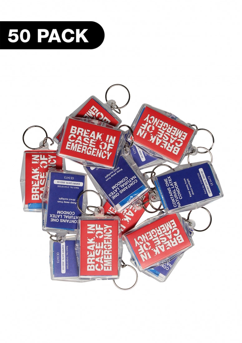 Deze handige sleutelhanger met de zin 'Break In Case Of Emergency' bevat 1 condoom. Als je geluk hebt, hoef je alleen maar je sleutelhanger open te maken en je bent er helemaal klaar voor! Als je het condoom gebruikt hebt, kun je gewoon een nieuw rechthoekig condoom in de sleutelhanger doen en je bent klaar om te gaan.