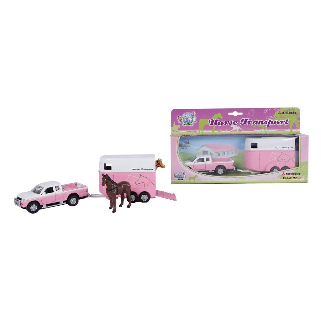 Kids Globe Die Cast pull back Mitsubishi met paardentrailer