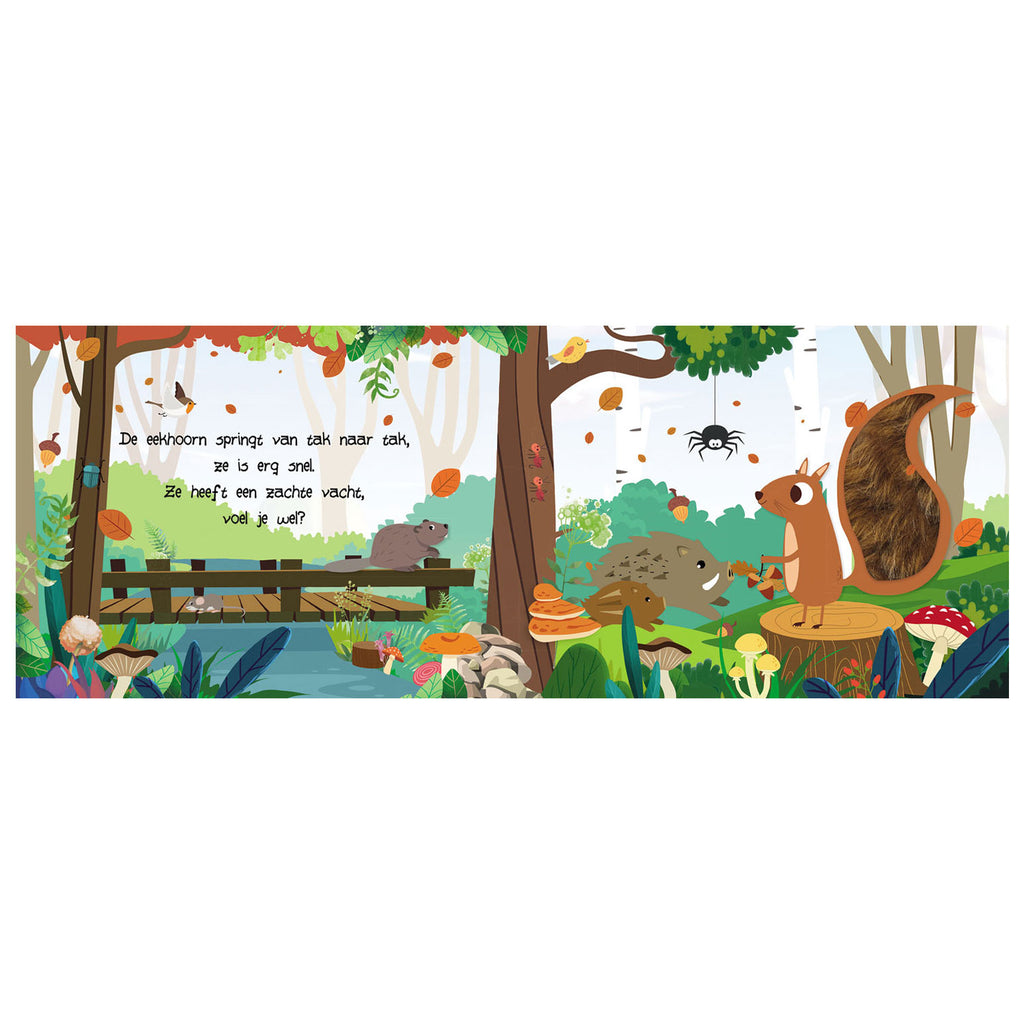 Ken jij deze dieren uit het bos? In dit boekje kun je ze niet alleen zien, maar ook aaien! Voel maar eens aan de vacht van het hert, de eekhoorn en nog veel meer dieren. Het boek is voorzien van mooie, kleurrijke illustraties en voelelementen. Met lieve rijmpjes die erom vragen voorgelezen te worden. Met dit veilige boekje mogen kleintjes naar hartenlust spelen!