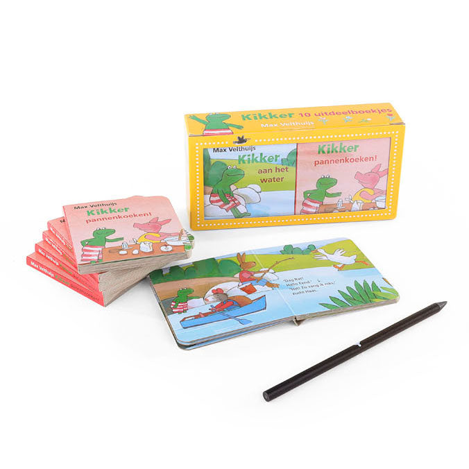 Tien vrolijke kartonboekjes om uit te delen (2x5 boekjes met hetzelfde verhaal). Ideaal om te trakteren op een feestje, op school of de crèche.