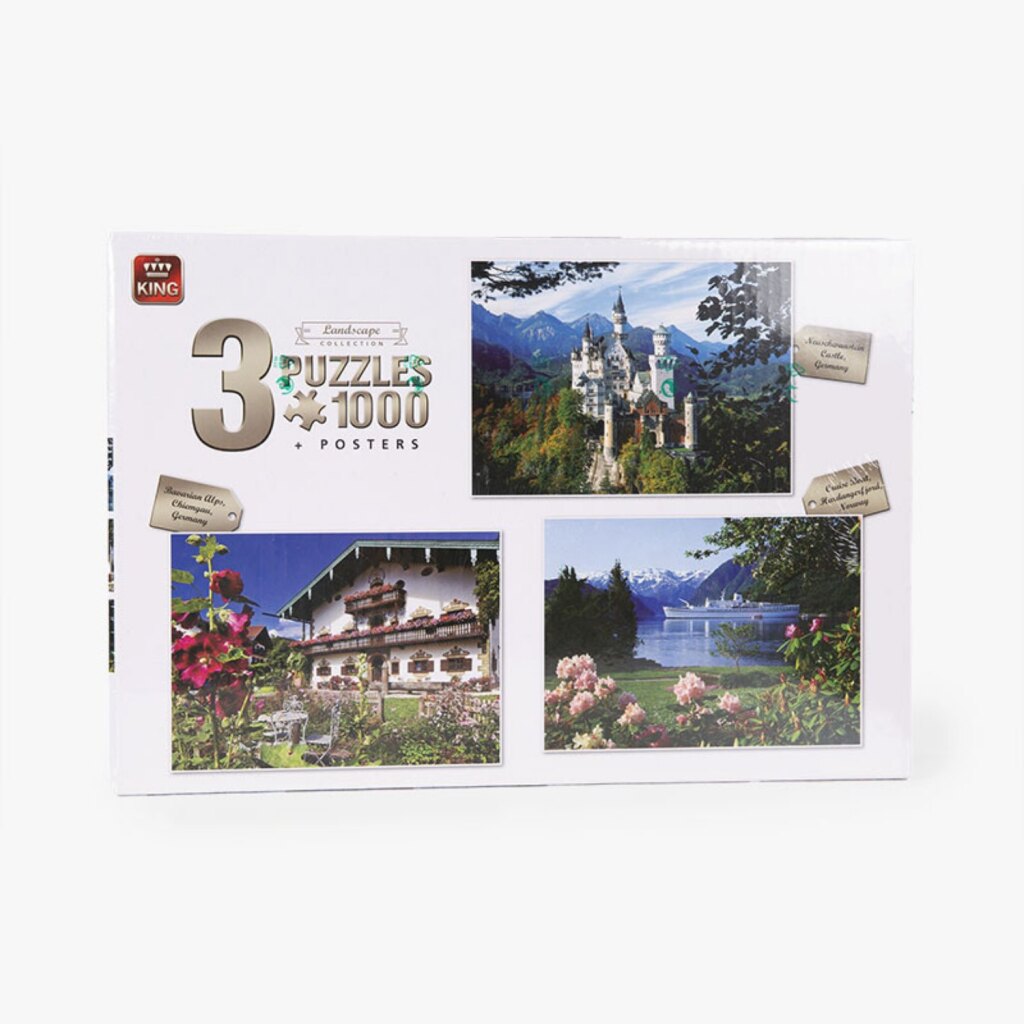 King puzzel Landscape Collection met posters, inhoud: 3x1000 stukjes