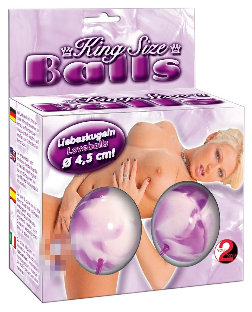 Extra-large, elegant marbled love ball duo with elastic return strap. The balls are suitable for an effective pelvic floor workout: inside, ball weights rotate and trigger vibrations with every movement, which lead to powerful muscle contractions. With their weight of 177 g, the love balls are ideal for experienced women.