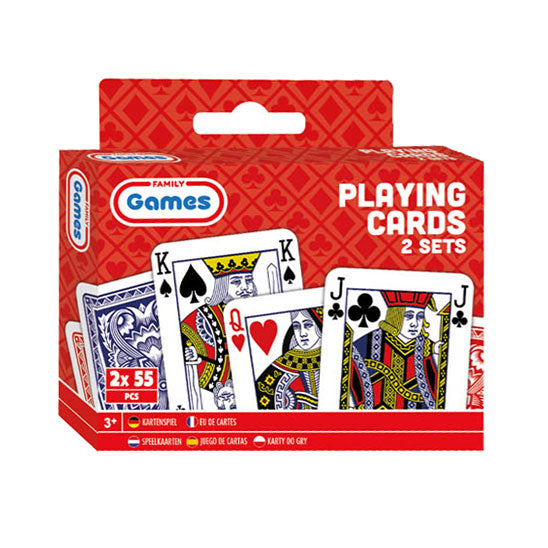 Doos met 2 sets speelkaarten (elk 55 kaarten). Gemaakt van papier/karton.