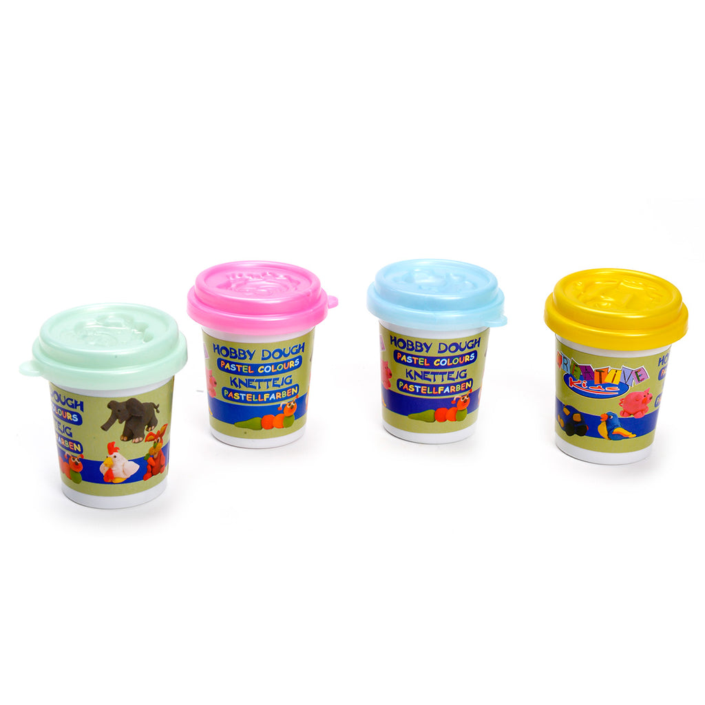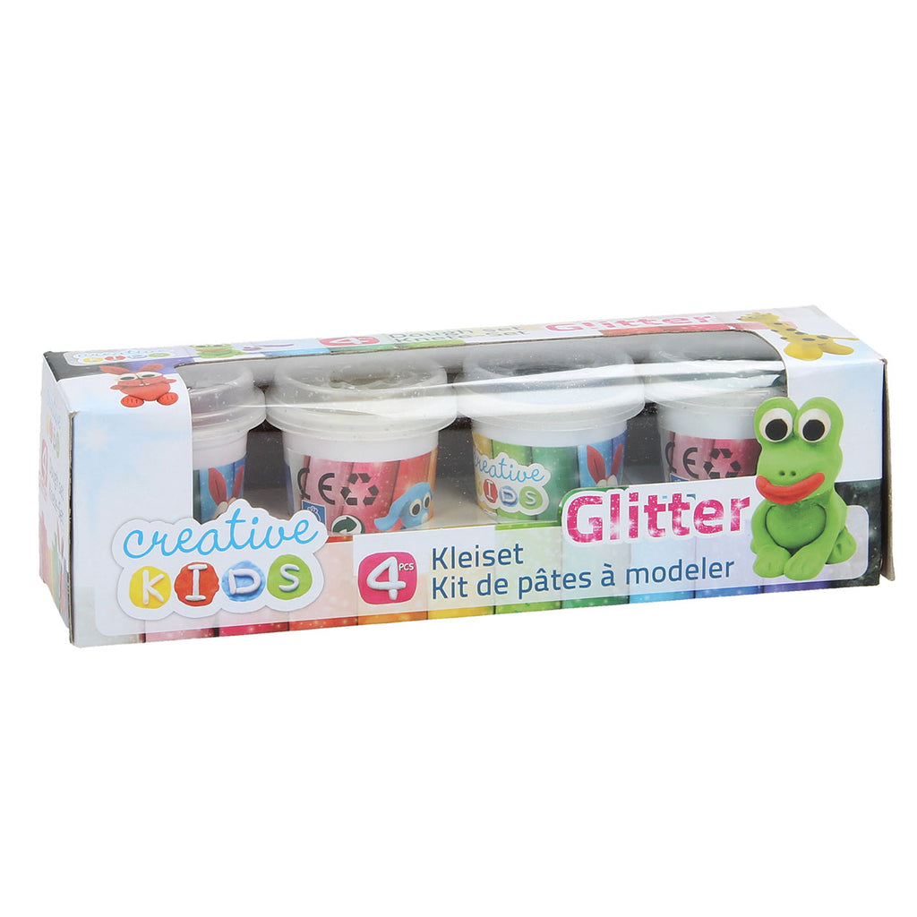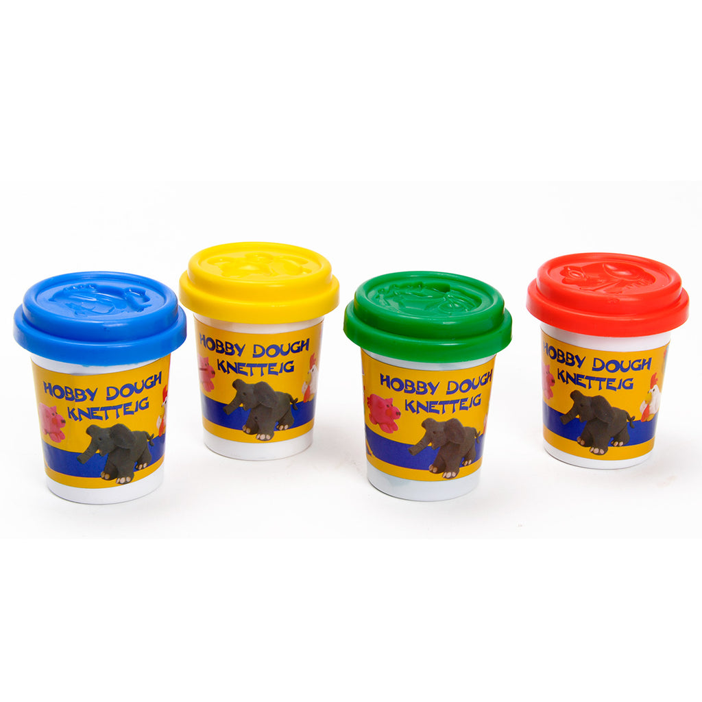 4 potjes klei in verschillende kleuren. Geschikt voor kinderen vanaf 3 jaar.