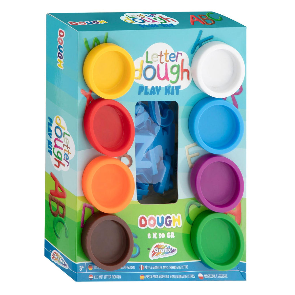 Kleiset met uitdrukvormpjes van het hele alfabet en 8 kleuren klei.