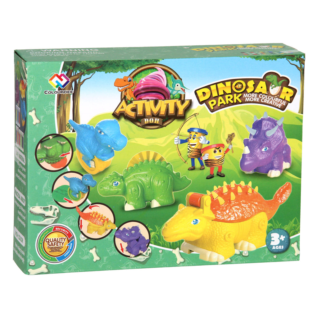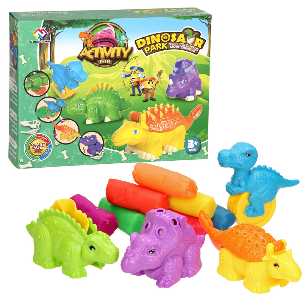 Heb uren speelplezier met deze kleiset met dino’s! Elke dinosaurus heeft hun eigen unieke onderdeel om met de klei te spelen, bijvoorbeeld door het te snijden, pootafdrukken achter te laten, of laat klei uit de rug of kop komen! Inhoud: vier verschillende dino’s en acht verschillende kleuren klei (in totaal 227 gram). De dino’s zijn gemaakt van kunststof.