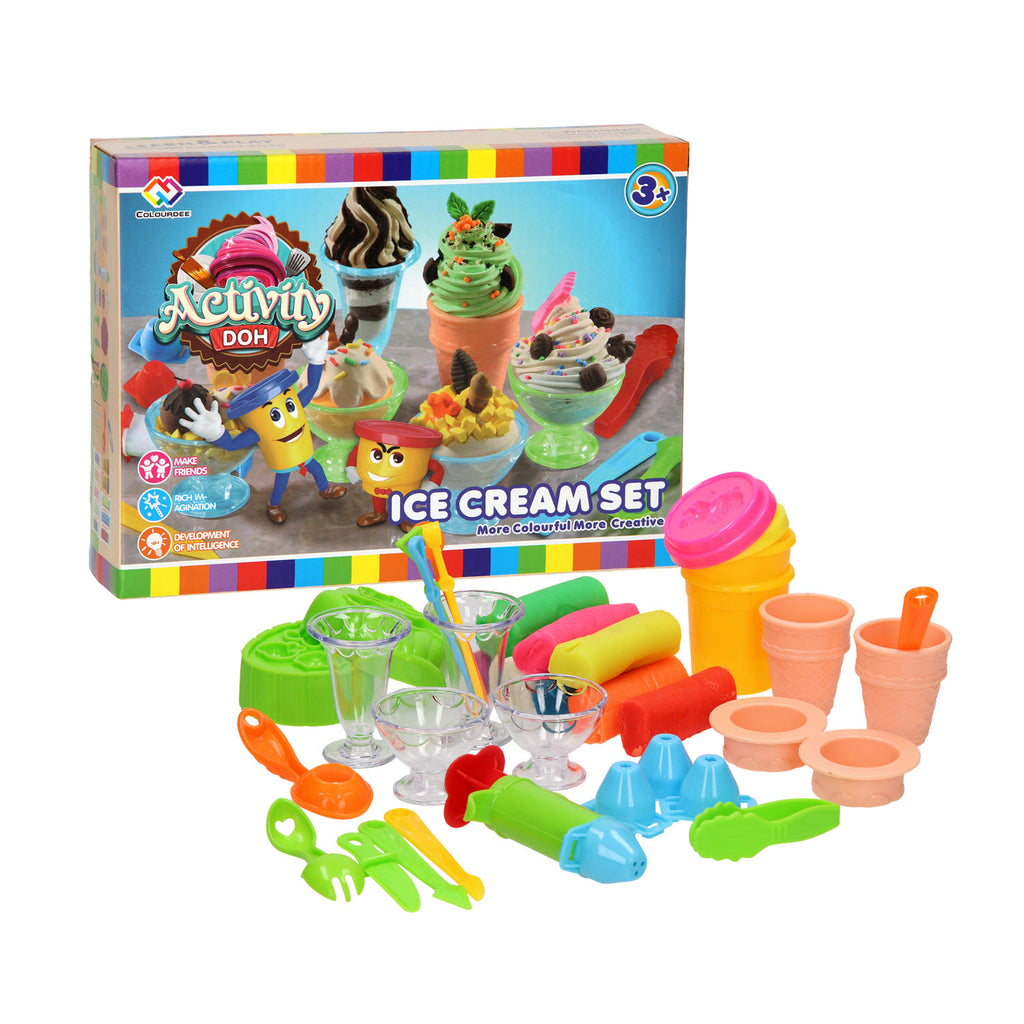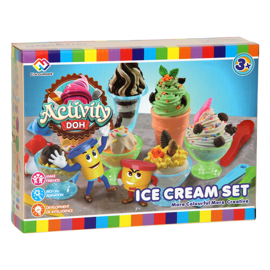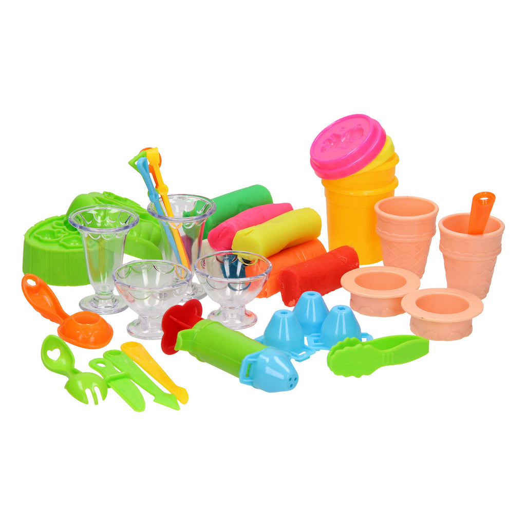 Maak allerlei verschillende ijsjes met deze kleiset! Wees creatief en versier je ijsjes met allerlei soorten kleivormpjes die bij de set geleverd worden. Inhoud: vier ijsbekers, twee ijshoorntjes, acht verschillende kleuren klei (in totaal 227 gram), verschillende kleivormpjes en alle benodigdheden om de ijsjes te maken. De kleivormen zijn gemaakt van kunststof.