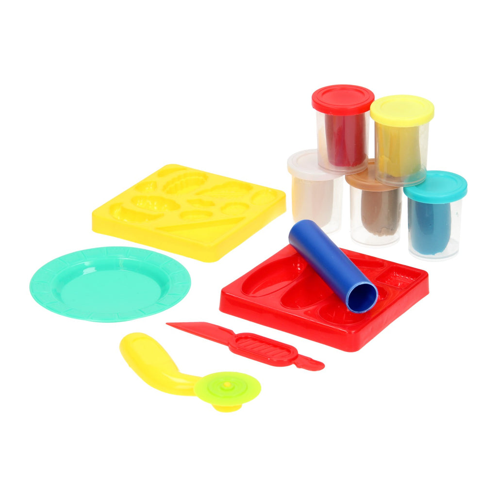 Met deze speelset wordt het een sandwich feestje! Maak verschillende soorten beleg en broodjes. Beleg vervolgens je sandwich precies zoals jij zelf wilt. Het pakket bevat twee bakvormen, een bordje, een pizzasnijder, een mesje, een rollertje, vijf kleuren klei en een tafelkleedje. De kleuren kunnen gemengd worden om meer kleuren te maken. Deze speelset bevordert de ontwikkeling van creativiteit en fantasie bij kinderen.