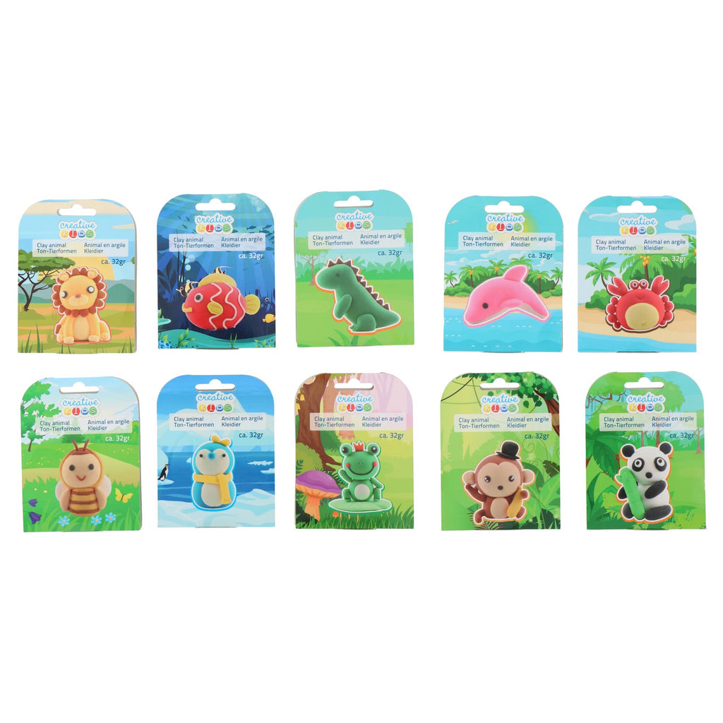Kleisetje Dier. In het setje zitten een potje klei van circa 32 gram met vier verschillende kleuren klei.