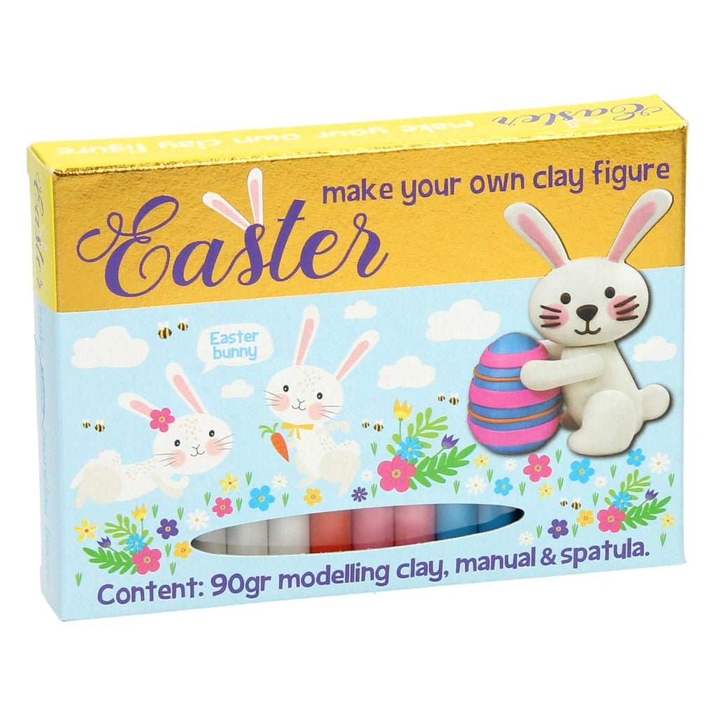 Kleiset Paasfiguur. Klei een kip, een schaap of een paaskonijn. Inhoud kleiset: kleistaafjes in verschillende kleuren, een voorbeeldafbeelding en boetseergereedschap.