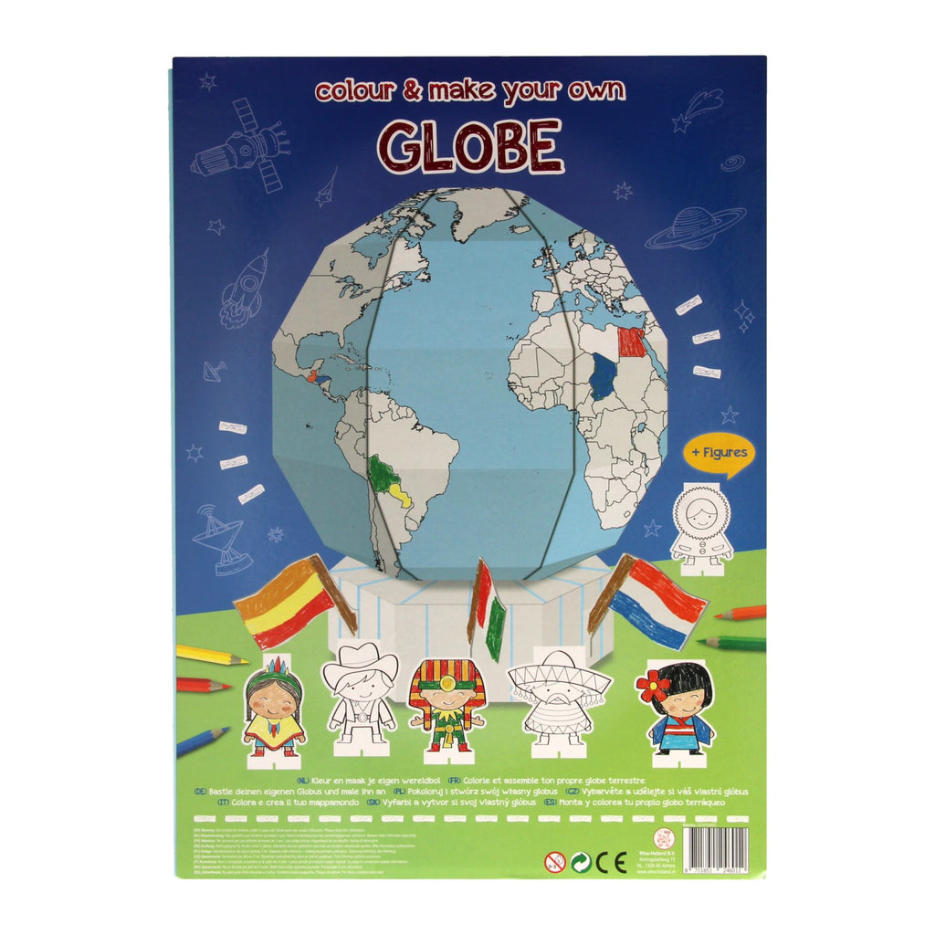 Knutsel je eigen wereldbol en kleur deze in met deze leuke set. Je kunt de kartonnen onderdelen als een puzzel in elkaar plakken, inclusief figuren. Lukt het jou om een wereldbol te maken?