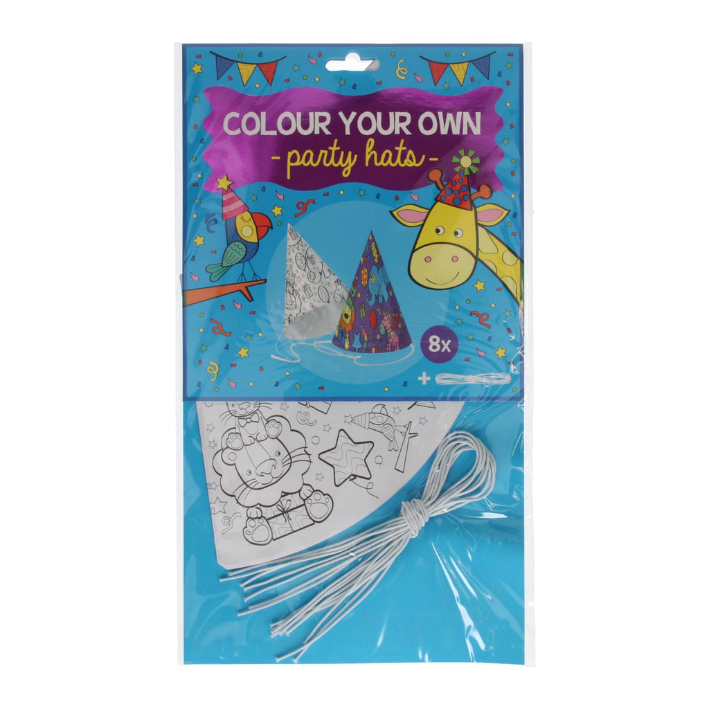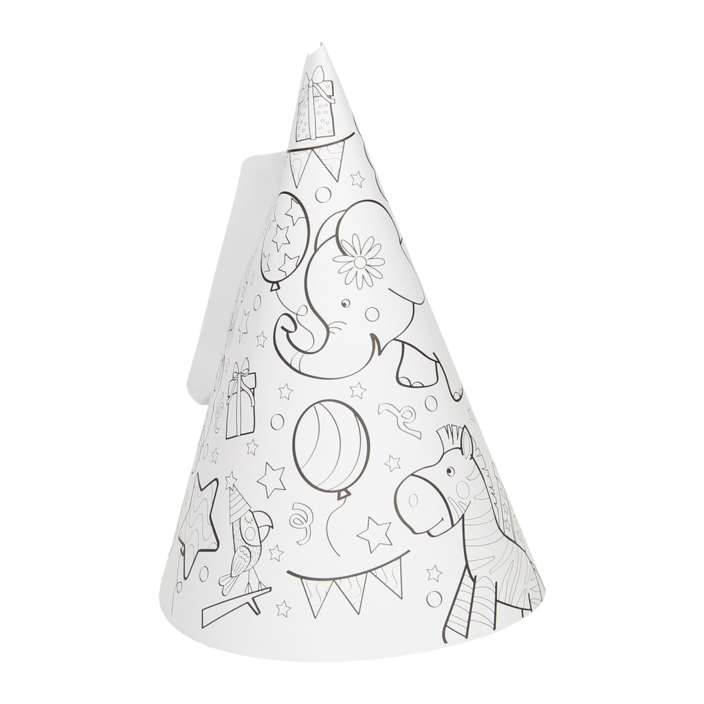 Inkleurbare feesthoedjes, 8 stuks. Geschikt vanaf 3 jaar.
