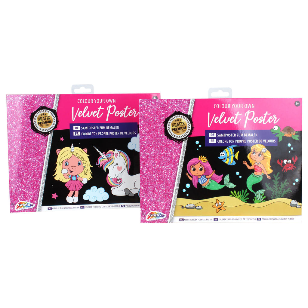 Kleur je eigen Fluweel Poster Eenhoorn/Zeemeermin