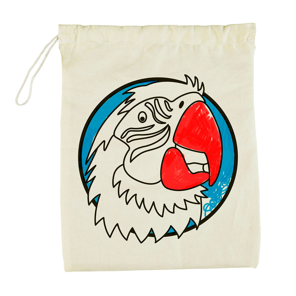 Deze katoenen knikkerzak met mooie print kun je helemaal naar eigen zin inkleuren! Exclusief stiften.