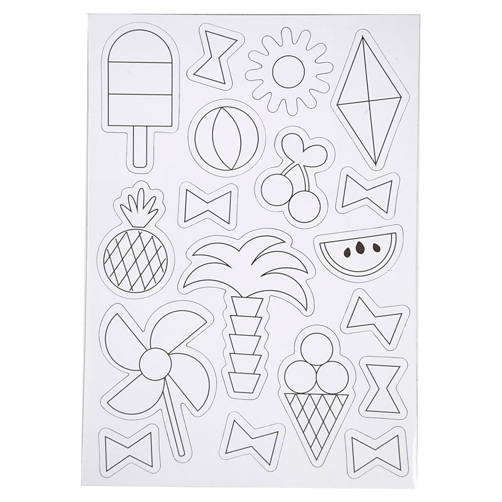 Kleur je eigen magneten met deze set! In de set zit een magneet vel van A5 formaat met geponste zomerse magneten. Kleur de magneet van je keus in en hij is klaar voor gebruik! Nu hoef je alleen nog maar een mooi plekje op de koelkast of op het magneetbord uit te kiezen.