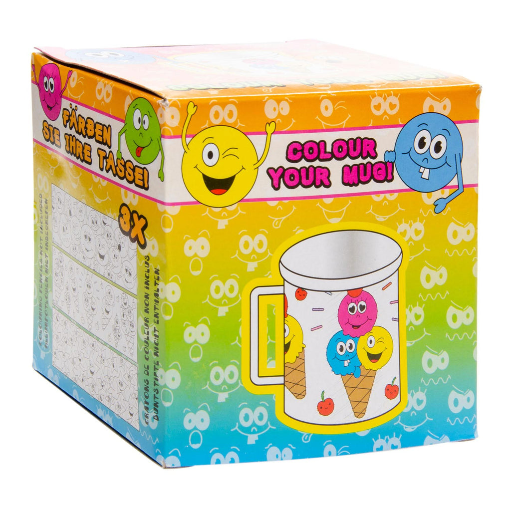 Kleur je eigen Mok Lachgezicht. Inhoud: kunststof mok en drie kleurplaten. Exclusief kleurpotloden.