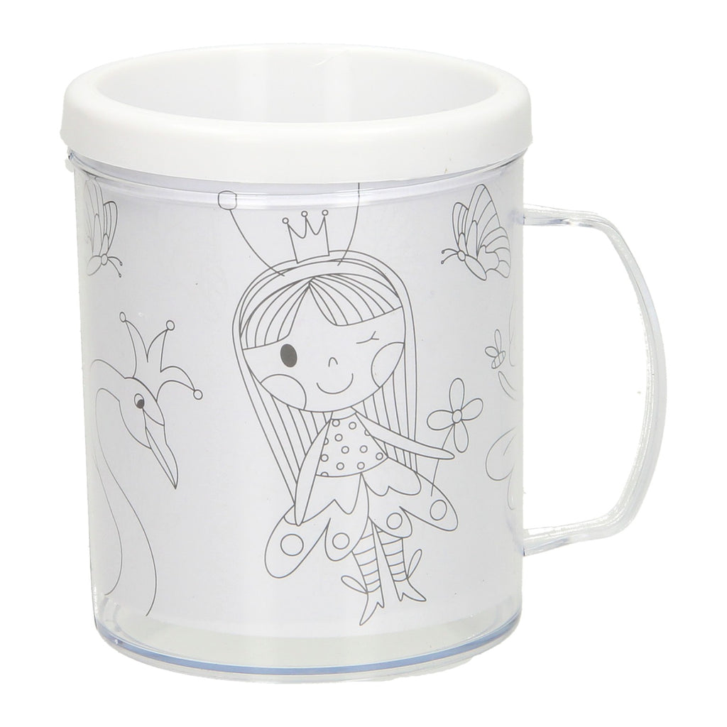 Kleur je eigen kunststof mok met deze complete set. De set bestaat uit een dubbelwandige mok waar je een kleurplaat tussen kan doen. De mok komt met 3 kleurplaten die je kan verwisselen. Kleurpotloden of krijtjes zijn niet inbegrepen. De mok is niet geschikt voor de vaatwasser of magnetron.