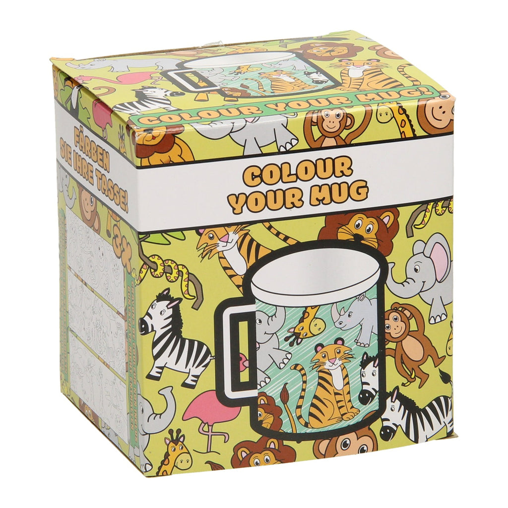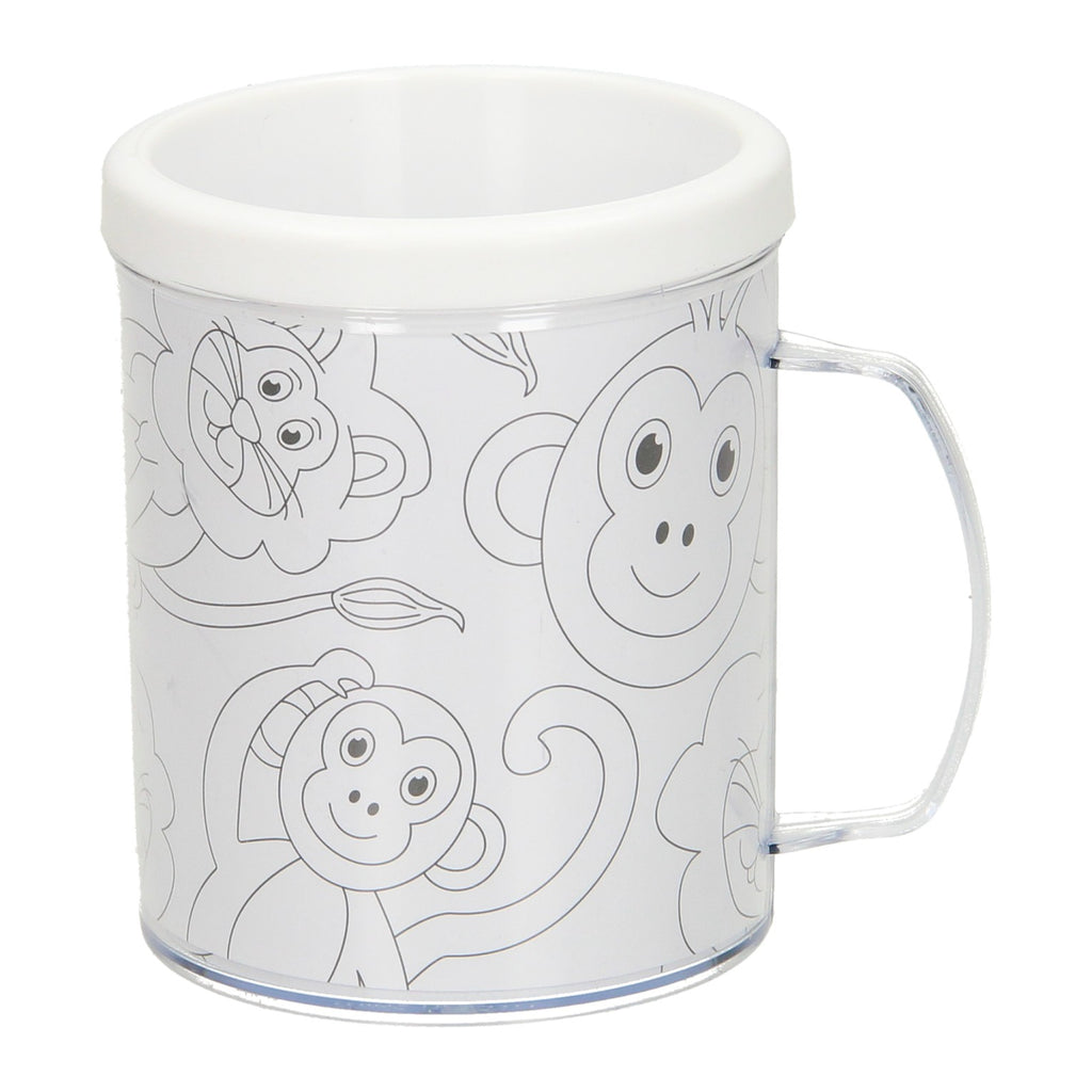 Kleur je eigen kunststof mok met deze complete set. De set bestaat uit een dubbelwandige mok waar je een kleurplaat tussen kan doen. De mok komt met 3 kleurplaten die je kan verwisselen. Kleurpotloden of krijtjes zijn niet inbegrepen. De mok is niet geschikt voor de vaatwasser of magnetron.