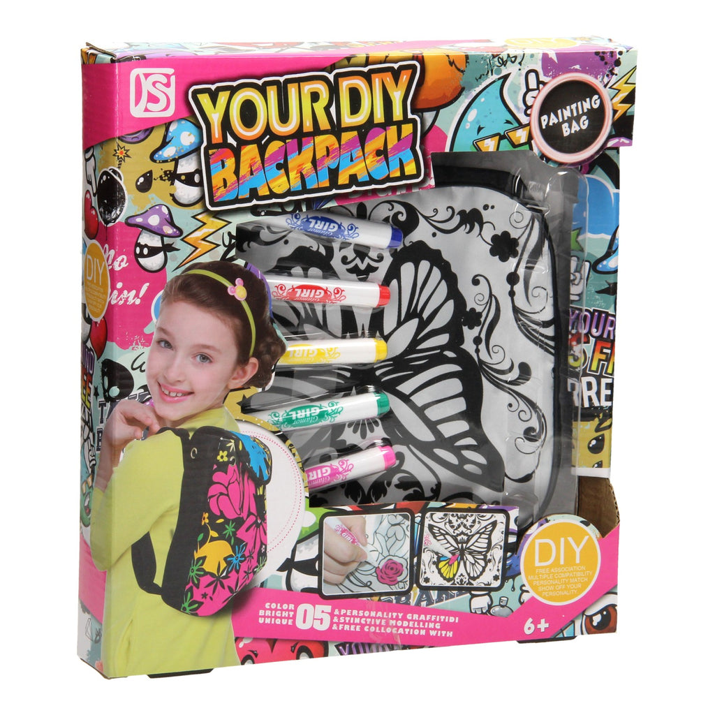 Deze vlinder tas is nog niet helemaal af, want jij mag hem nog gaan inkleuren! Zo wordt het echt jouw tas. Gebruik de vijf stiften die meegeleverd zijn om de tas in te kleuren en maak er je eigen kunstwerk van. De kleuren van de stiften zijn: rood, geel, roze, groen en blauw.