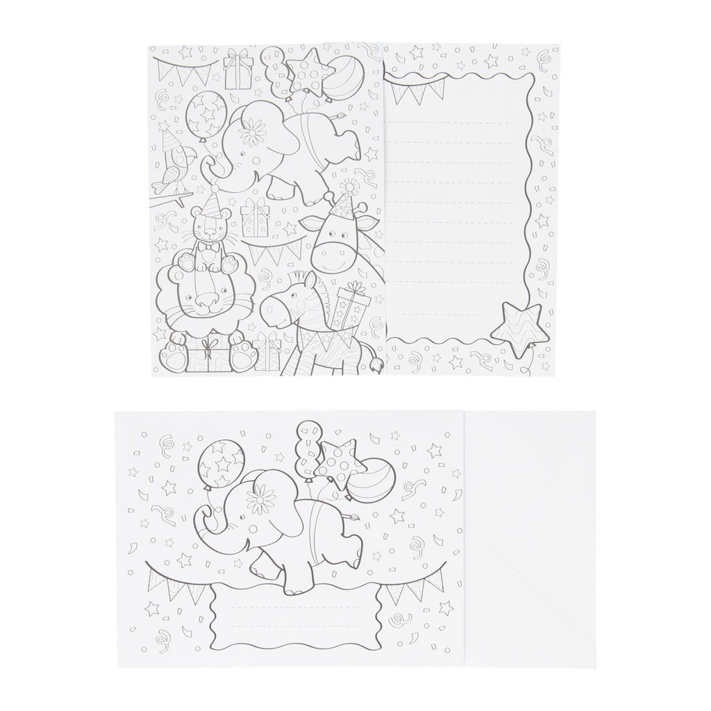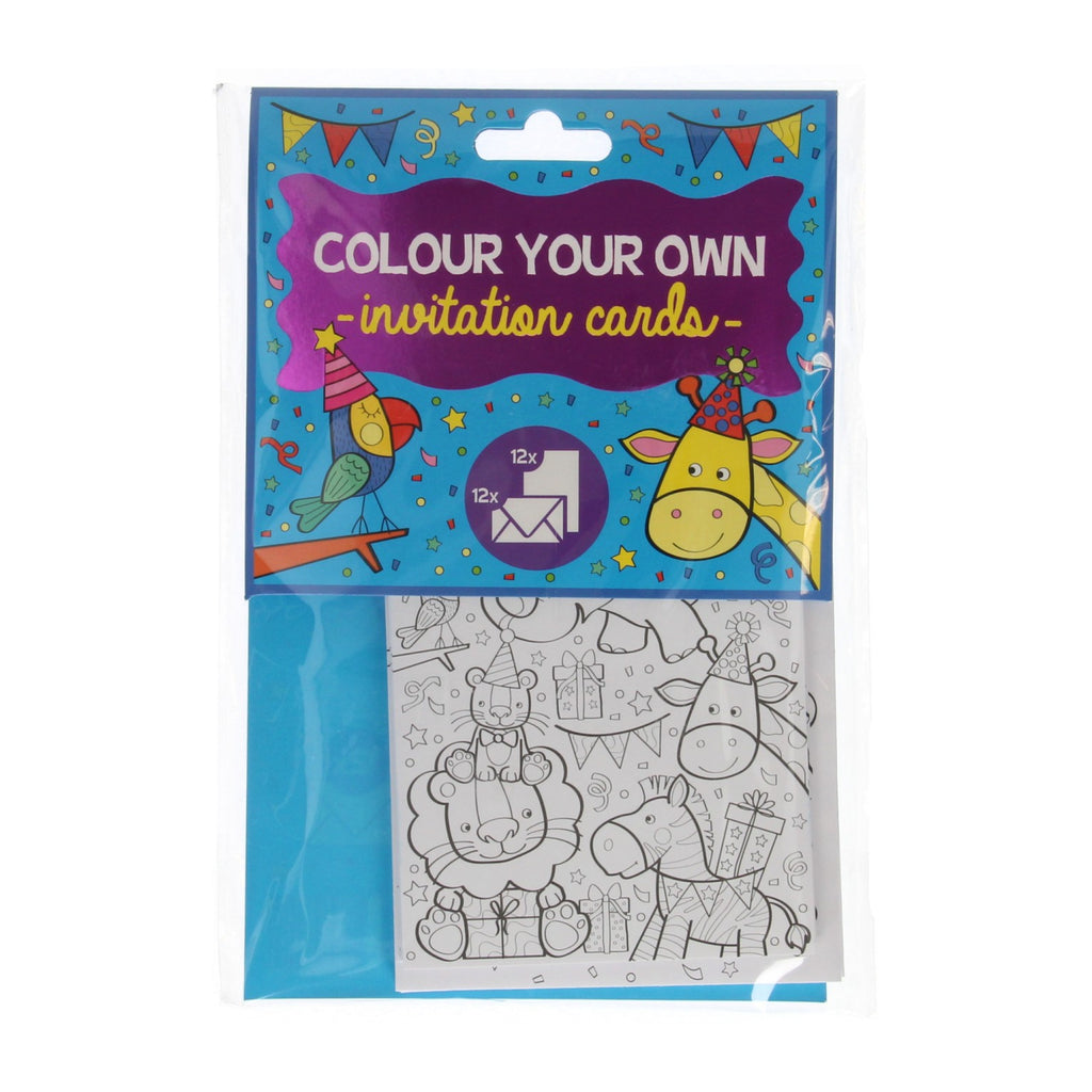 Inkleurbare feestuitnodigingen, 12 stuks. Geschikt vanaf 3 jaar.