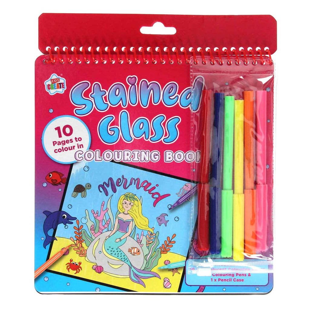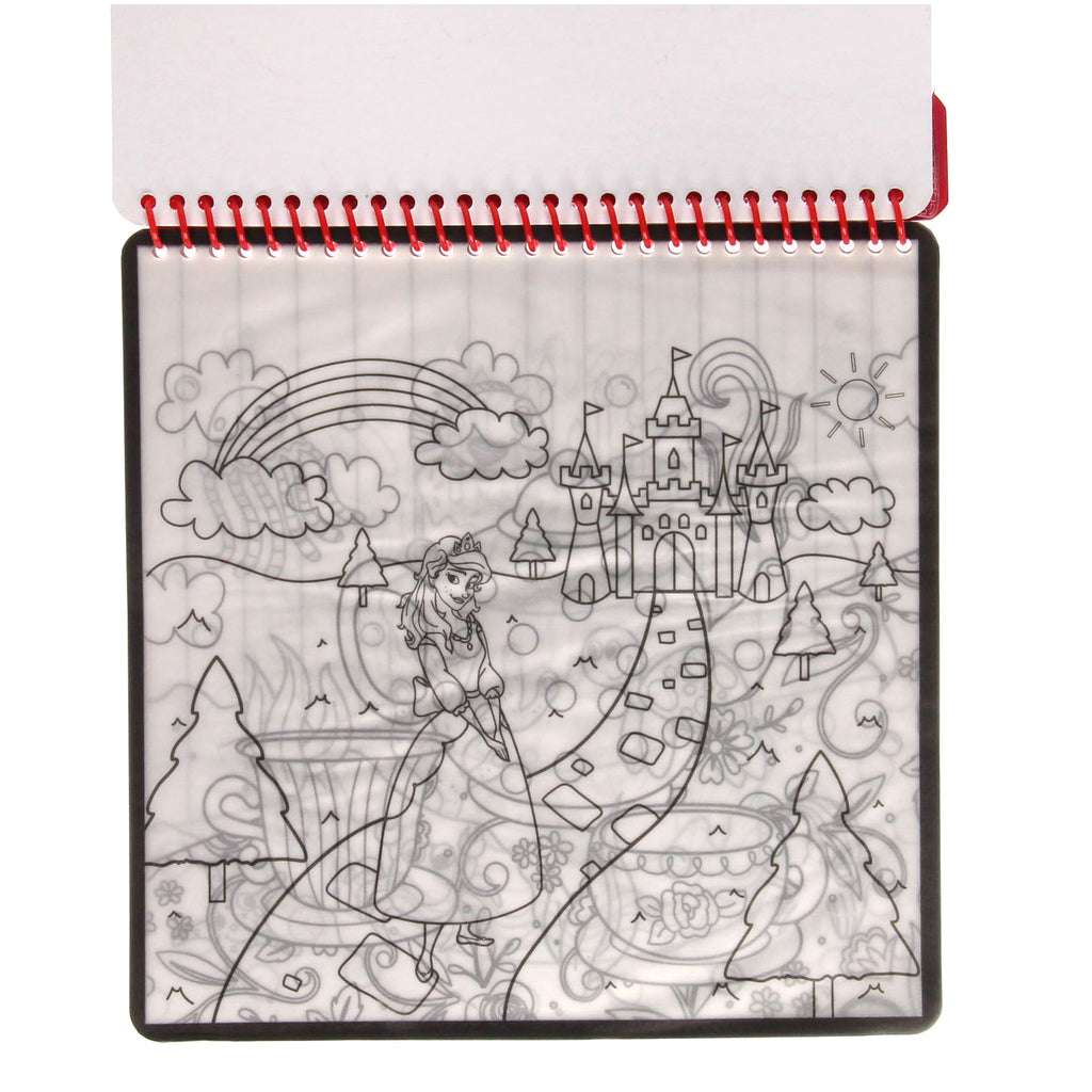 Kleurboek met doorzichtige kleurplaten, inclusief 6 stiften.