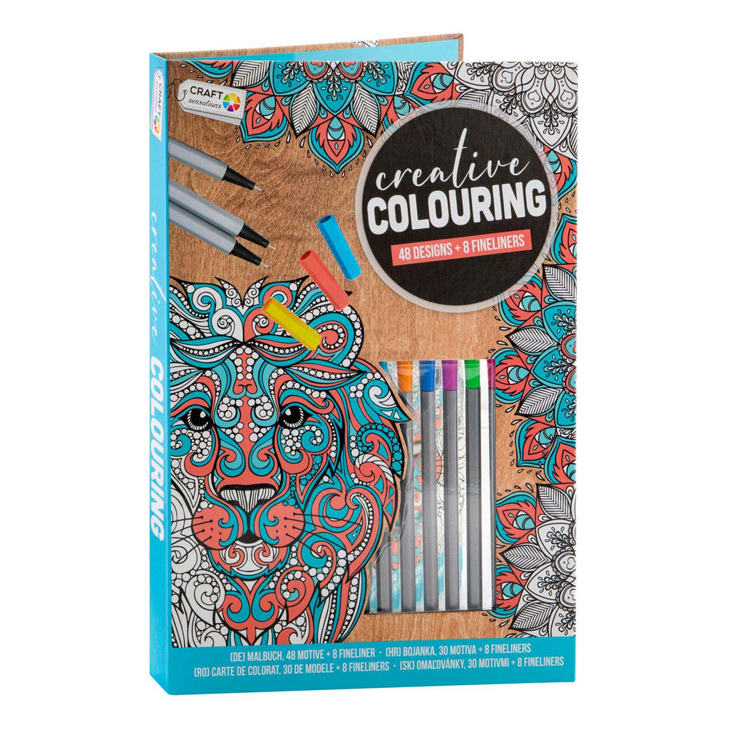 Kleurboek met 48 kleurplaten en 8 Fineliners - Blauw.