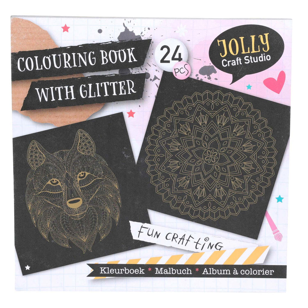 Het kleurboek met glitters bevat 24 kleurplaten om in te kleuren.